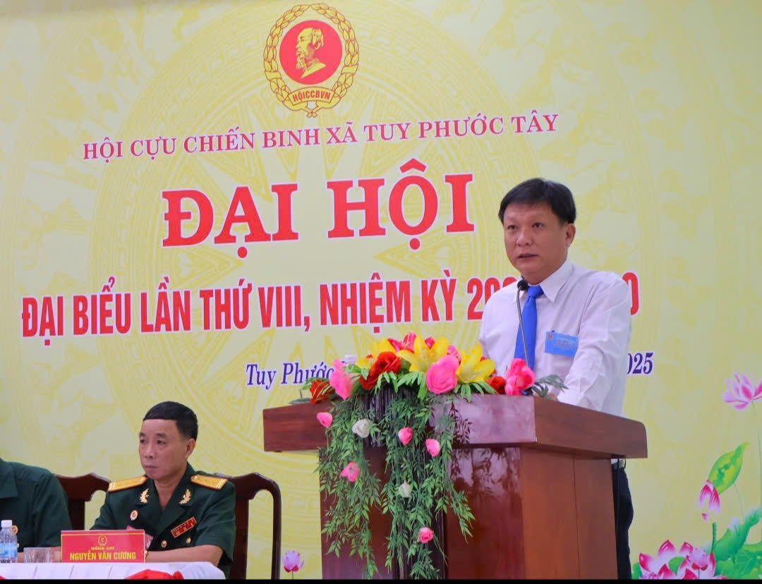 Phát biểu chỉ đạo tại Đại hội, Đồng chí Trần Duy Vũ- Phó Bí thư Thường trực Đảng ủy xã ghi nhận và biểu dương những kết quả thành tích mà Hội CCB đã đạt được trong nhiệm kỳ qua. Đồng thời đề nghị trong nhiệm kỳ 2025 - 2030 Hội sẽ có bước phát triển mới, mạnh mẽ hơn nữa, sáng tạo hơn nữa, tiếp tục đạt được nhiều thành tựu mới, đóng góp xứng đáng vào sự nghiệp phát triển kinh tế - xã hội, xây dựng quê hương Tuy Phước Tây ngày càng phát triển, giàu đẹp.