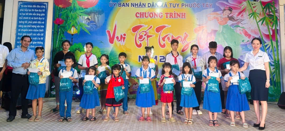 Tại chương trình, Ban tổ chức đã trao tặng 50 suất quà cho các em thiếu nhi có hoàn cảnh khó khăn trong đó 25 suất từ Quỹ Bảo trợ Trẻ em và 25 suất do Ngân hàng BIDV hỗ trợ (mỗi suất trị giá 200.000 đồng). Những phần quà đầy ý nghĩa này không chỉ mang lại niềm vui Trung thu mà còn thể hiện sự quan tâm chăm lo của cấp ủy chính quyền và các đơn vị doanh nghiệp đối với thế hệ trẻ đặc biệt là trẻ em có hoàn cảnh khó khăn. Qua đó góp phần khích lệ động viên các em vươn lên trong học tập và cuộc sống.
