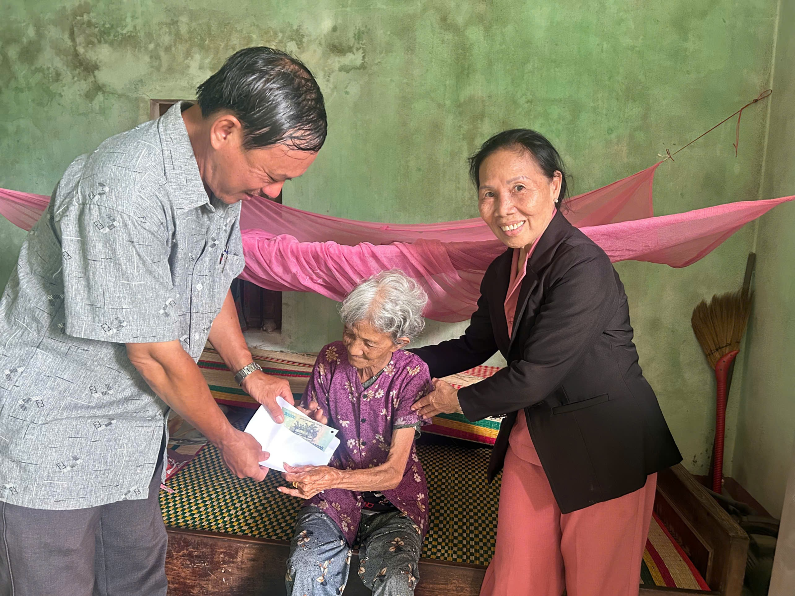 Đ/c: Huỳnh Tấn Dũng – Phó Trưởng phòng VHXH xã đến thăm bà Nguyễn Thị Chính (Cô đơn, nghèo, HC khó khăn thôn An Hoà 1)
