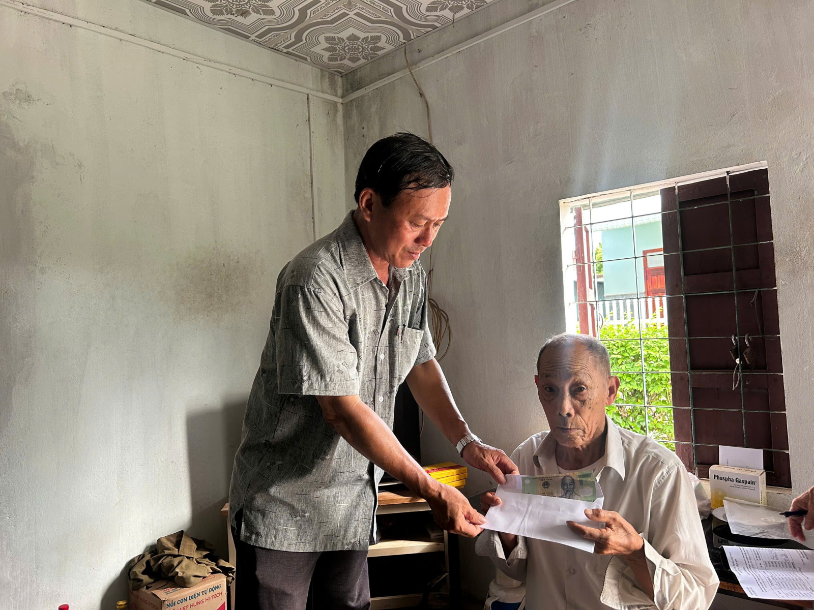 Đ/c: Huỳnh Tấn Dũng – Phó Trưởng phòng VHXH xã đến thăm đến thăm ông Phạm Huỳnh (Cô đơn, nghèo, đau bệnh thôn An Sơn 1)