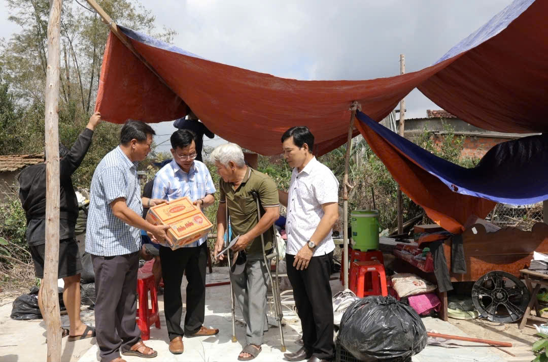 Tại các hộ gia đình được đến thăm, lãnh đạo xã đã ân cần thăm hỏi, chia sẻ khó khăn, động viên các hộ dân sớm khắc phục hậu quả, ổn định cuộc sống. Đoàn cũng đã trao những phần quà hỗ trợ, thể hiện sự quan tâm, sẻ chia của cấp ủy, chính quyền địa phương đối với các gia đình chịu thiệt hại nặng do bão.