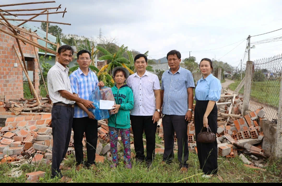 Sáng ngày 10/11/2025, đồng chí Phạm Công Đoan – Bí thư Đảng ủy, Chủ tịch HĐND xã; đồng chí Trần Duy Vũ – Phó Bí thư Thường trực Đảng ủy; đồng chí Tô Minh Chánh – Phó Bí thư Đảng ủy, Chủ tịch UBND xã; đồng chí Nguyễn Thị Ngọc Anh – Ủy viên Ban Thường vụ, Chủ tịch Ủy ban MTTQ Việt Nam xã đã đến thăm, động viên và tặng quà cho 05 hộ dân bị sập hoàn toàn nhà ở do ảnh hưởng của bão số 13 – Kalmaegi.
